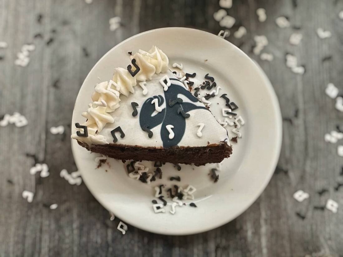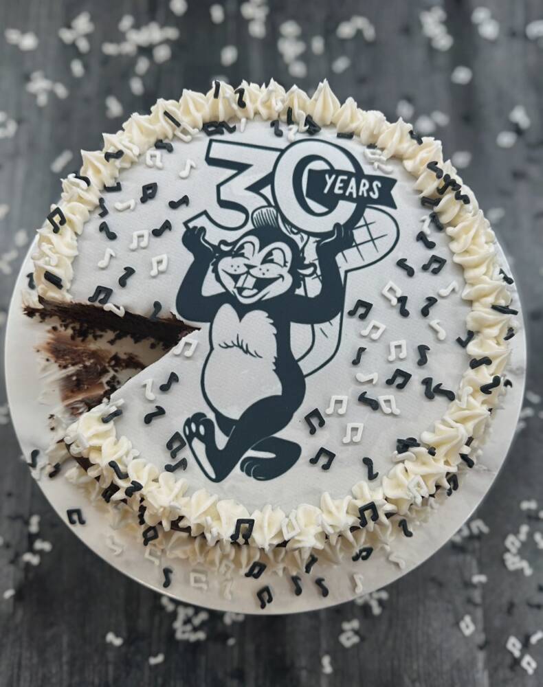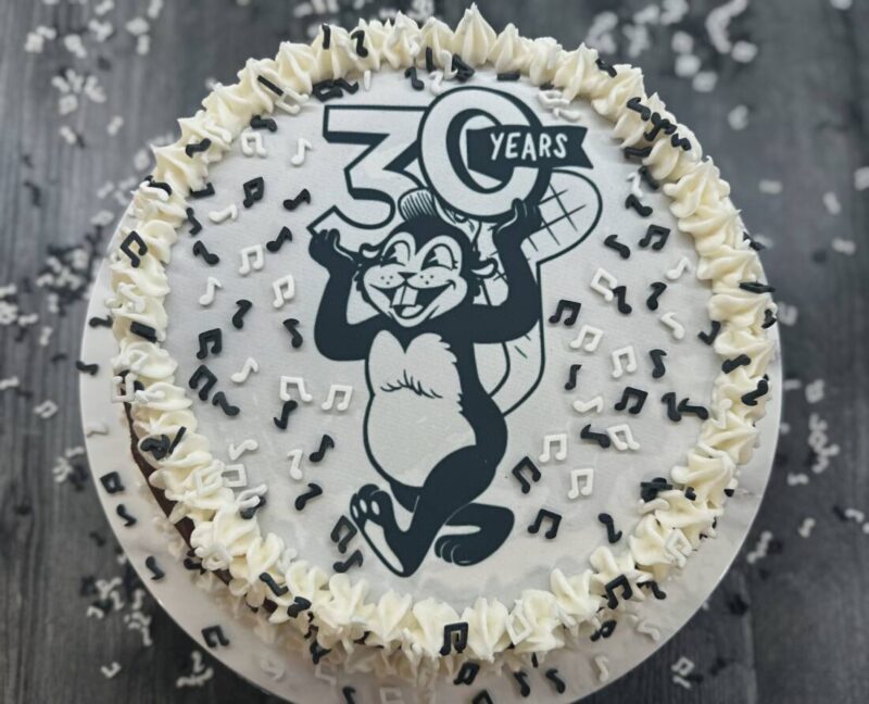 So how do we celebrate Busy Beaver’s 30th? With chocolate cake, of course. Not just any chocolate cake, but a classic mayo chocolate cake—the perfect tribute to Christen’s nostalgia and her family traditions. I topped it with rich chocolate buttercream, added the Busy Beaver logo in frosting, and scattered some fun music note sprinkles as a tribute to all the artists and musicians who’ve been part of their story. It’s a simple, old-fashioned dessert, but it carries the same spirit as Busy Beaver itself: heartfelt, nostalgic, and meant to be shared.