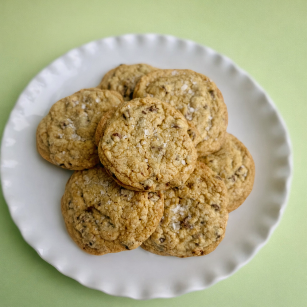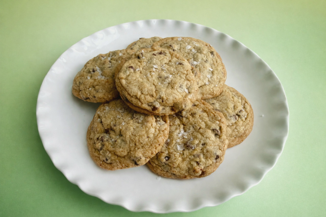 - Immediately sprinkle each cookie with flaky sea salt while the cookies are still warm.