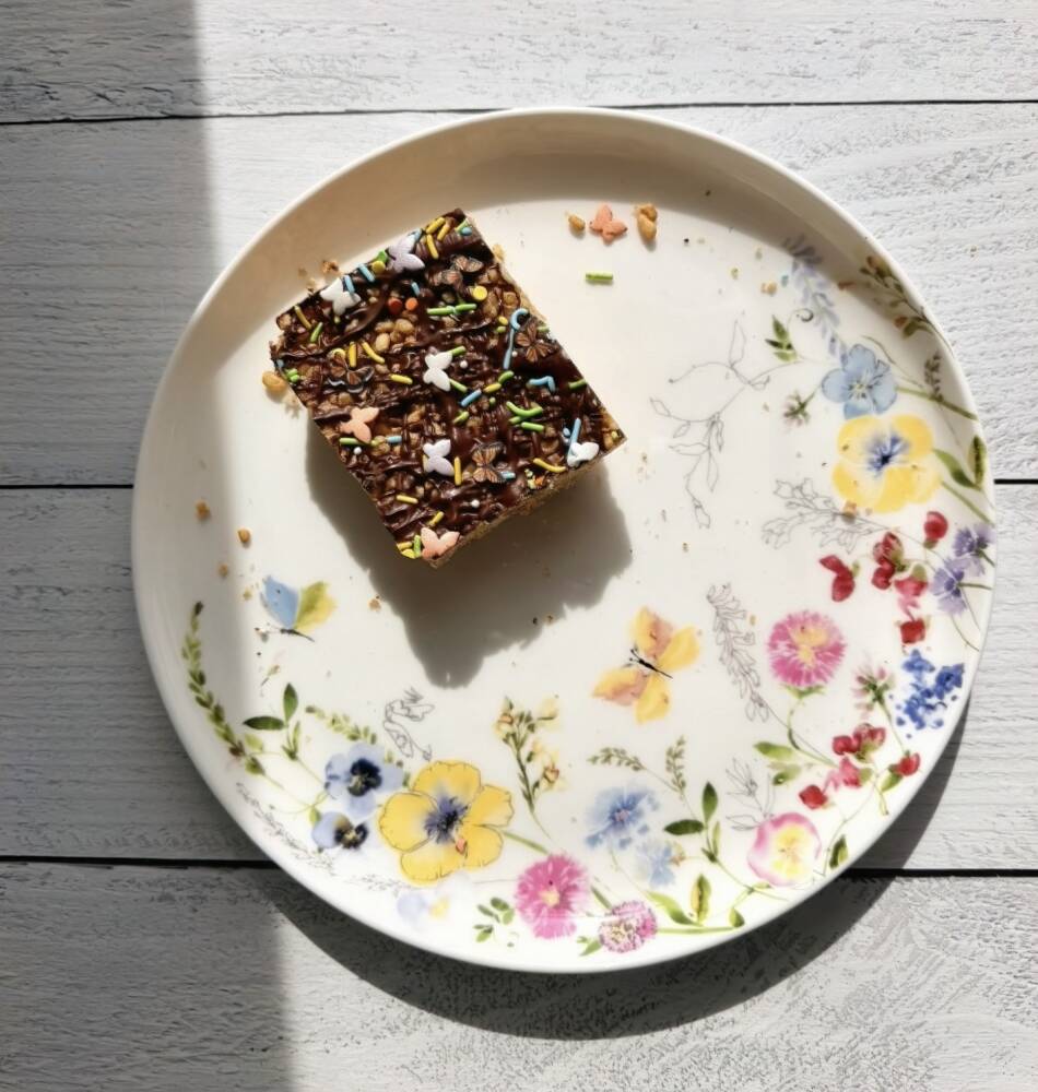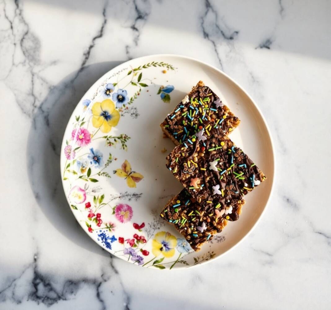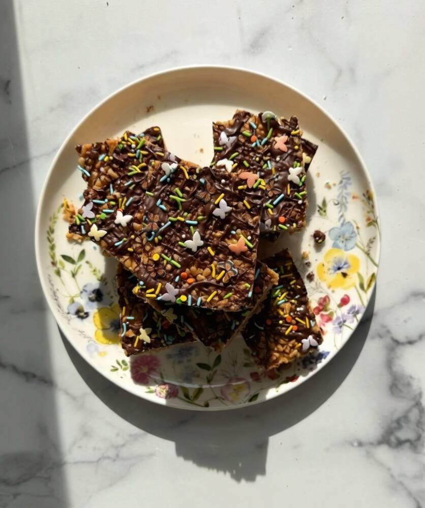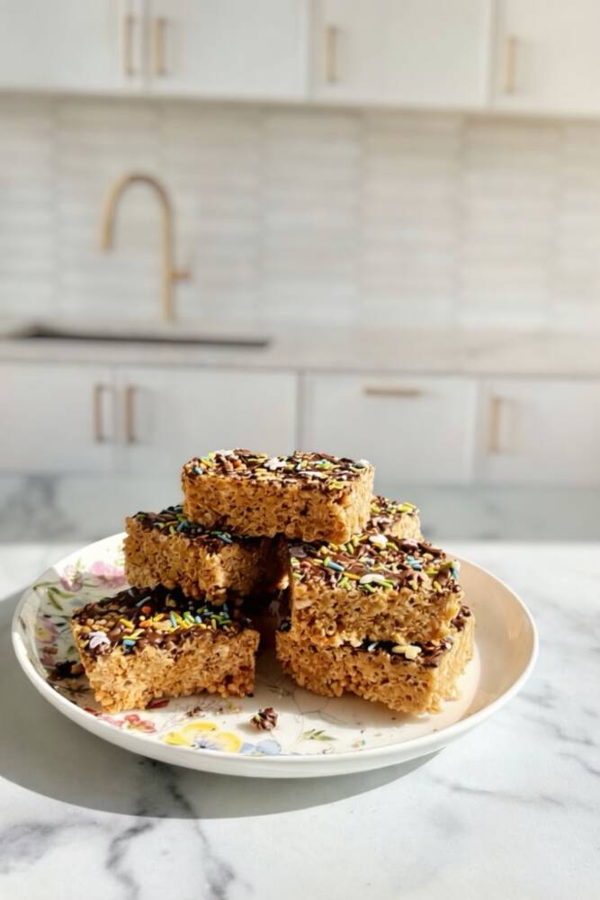 So, for this feature, Rice Krispies felt like the perfect fit. Classic country, paired with a classic treat. I made her version—with the peanut butter and chocolate layer—and added butterfly sprinkles on top. Something light, symbolic, and playful. Because that’s what this whole thing feels like. A reminder that the simplest things—music, food, memory—are often the ones that stay with us the longest. Check out the recipe below, and go stream Brittany Brodie while making some Rice Krispies treats inspired by her.