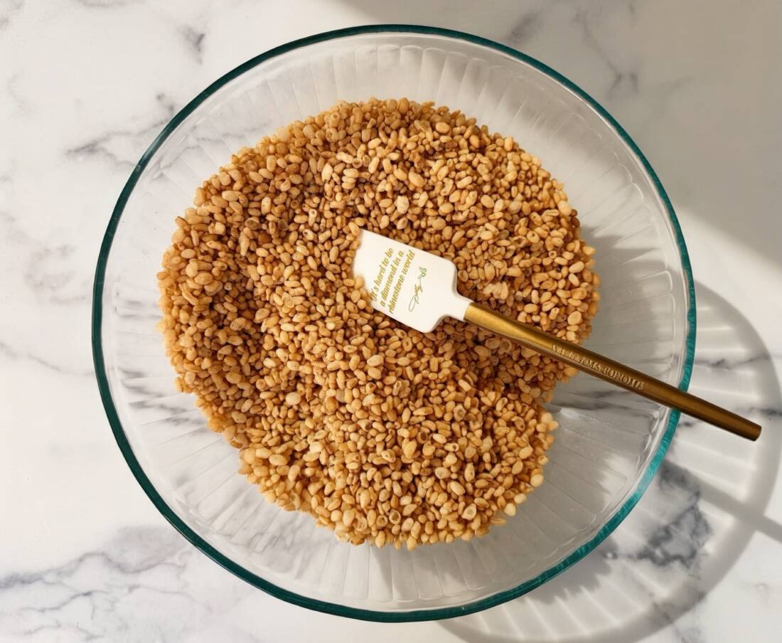 5. Quickly fold in the Rice Krispies until they’re evenly coated.