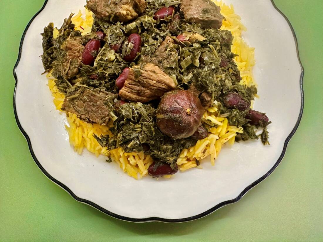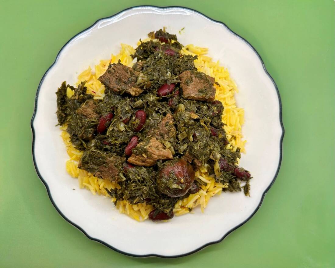 - Ladle Ghormeh Sabzi beside saffron rice. Serve with pickles or yogurt for a full Persian
